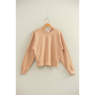 Ophelia- Natural- Scoop Neck Ribbed Long Sleeve Top