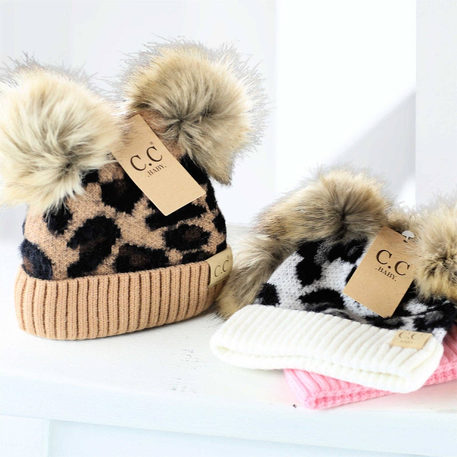 Make a statement with this adorable CC Double Pom Kid Leopard Beanie! This luxurious and soft beanie is designed with top-notch C.C.® Branding and Quality, and features two fluffy faux fur poms for extra cuteness.