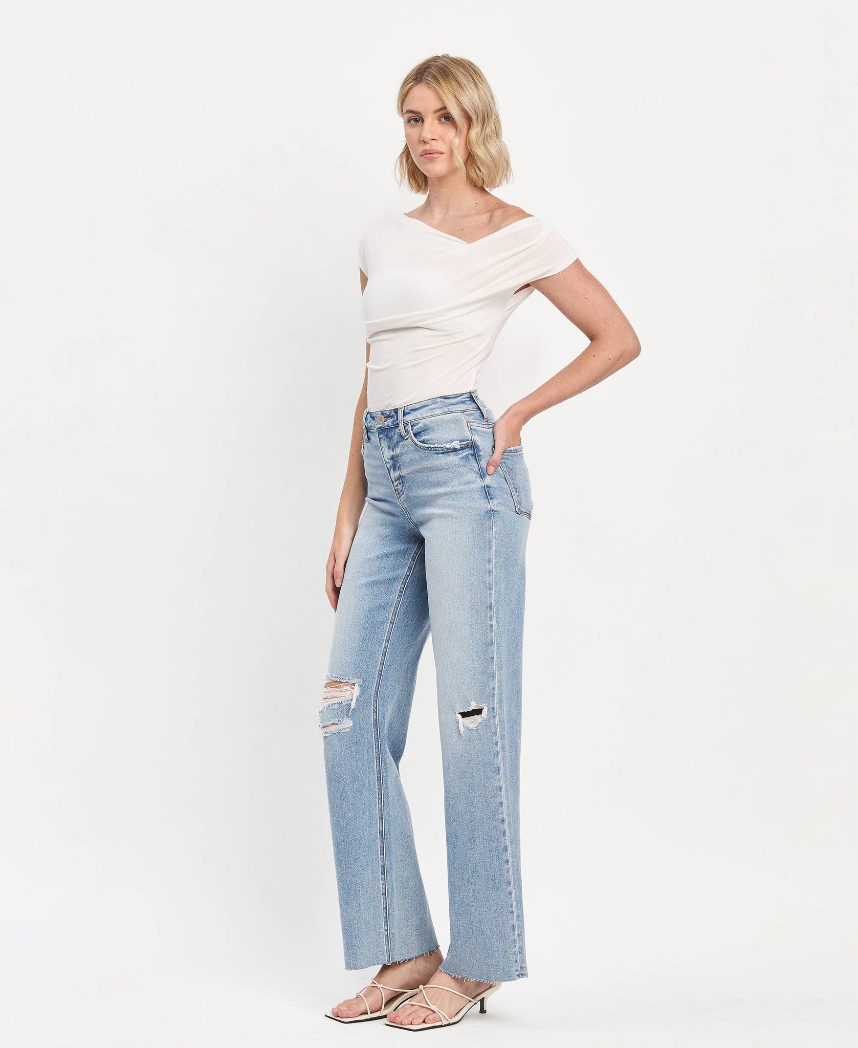 HIGH RISE- CLEAN CUT -RAW HEM -WIDE LEG JEANS