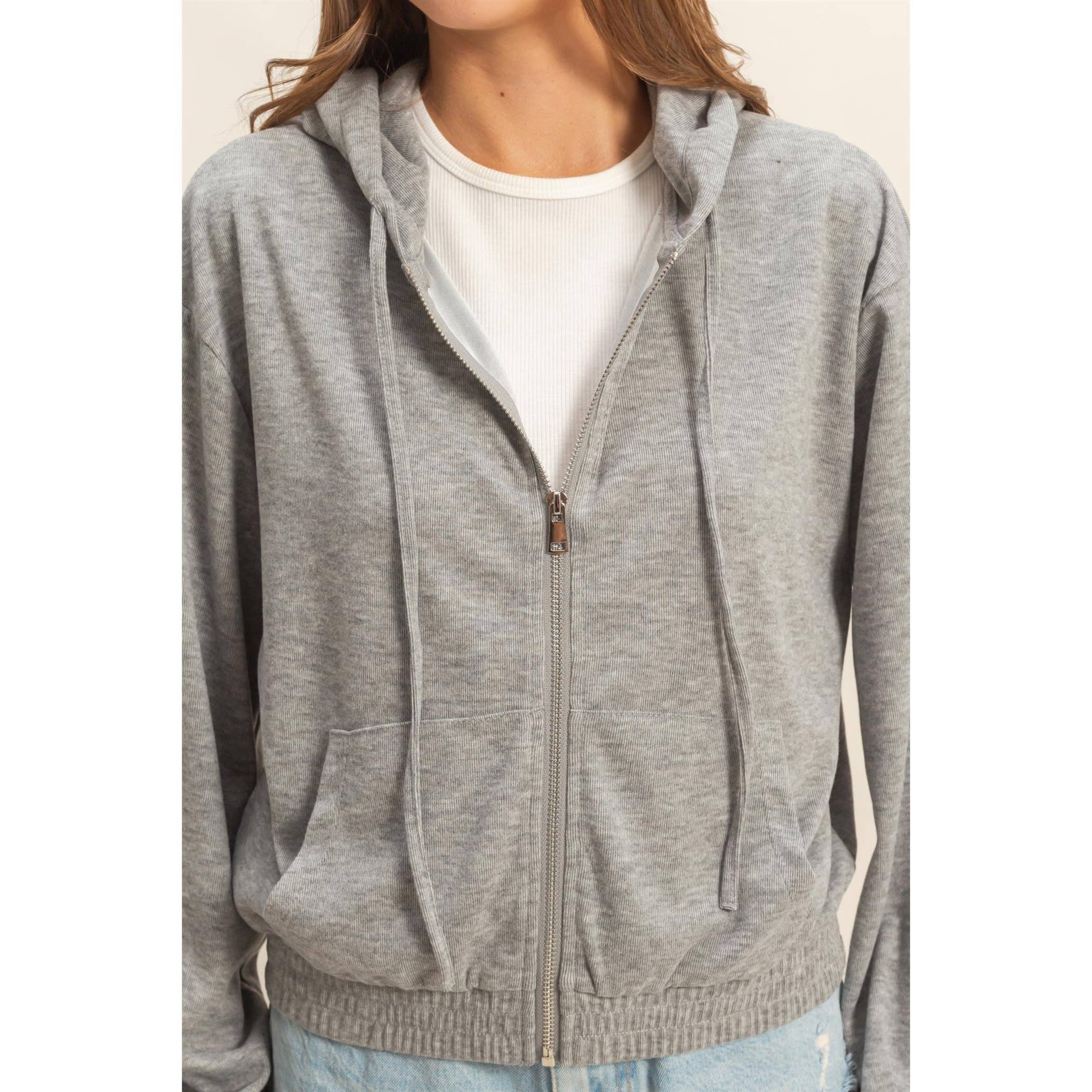 This essential piece features a streamlined silhouette with a full-zip front and a comfortable hood. Ideal for layering, it effortlessly transitions from a casual day out to a cooler evening. Pair with tailored pants or layered over a crisp tee for a smart, yet relaxed look. Its simplicity underscores its versatility, making it a staple in any wardrobe.