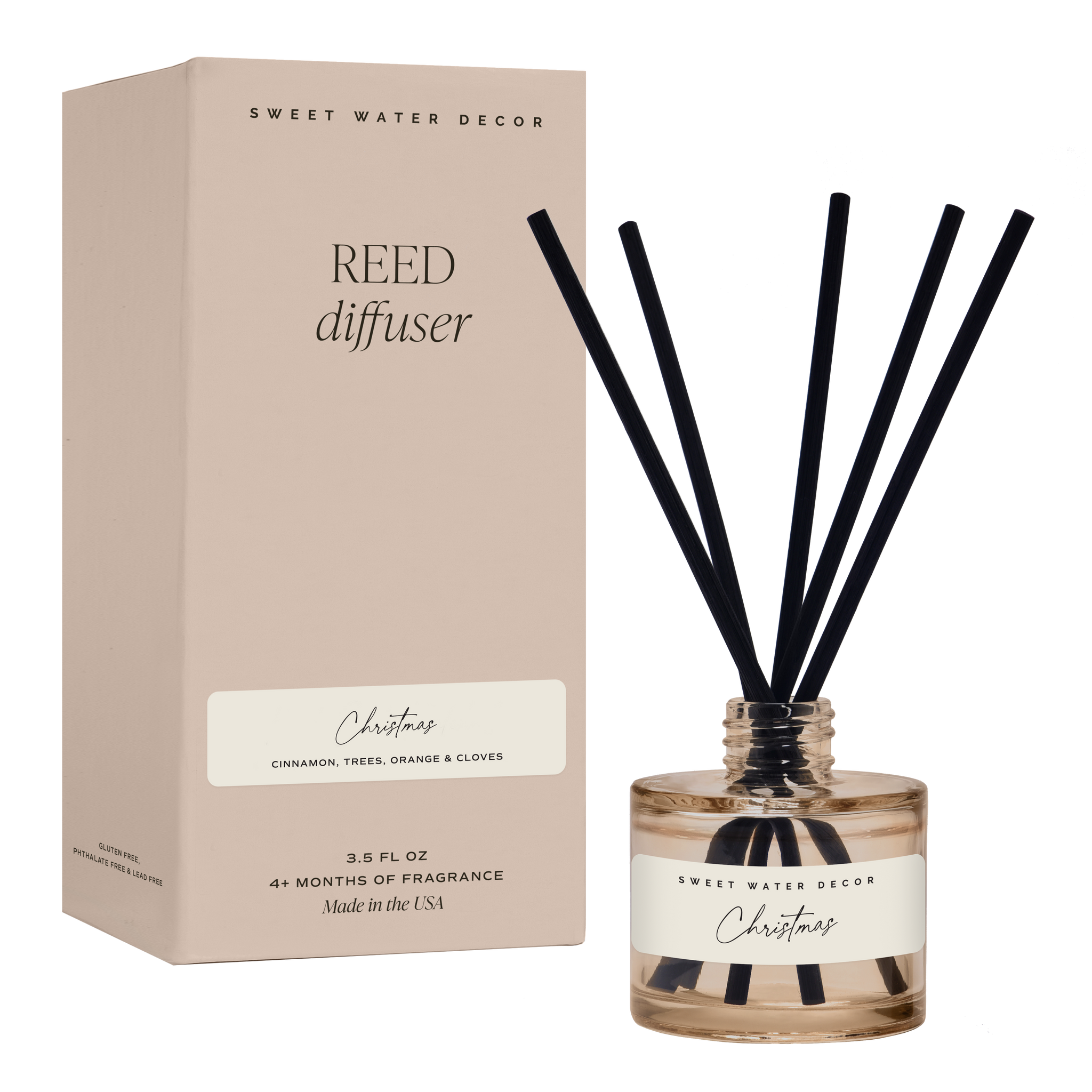 Our Christmas reed diffuser fills any space with festive notes of fresh-cut pine, apple cider, cinnamon, and clove. Its classic tinted glass design blends effortlessly with holiday decor, making it perfect for entryways, mantels, and guest rooms. A flameless, festive favorite for holiday displays, gifting, and creating a cozy, nostalgic atmosphere all season long.